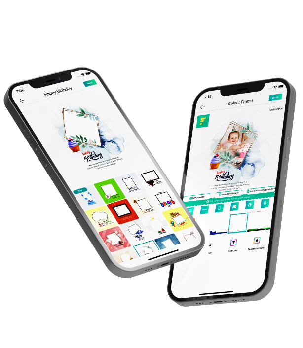 Share your photos with us, and we’ll seamlessly integrate them into a pre-designed frame layout, adding your business details such as your logo, company name, mobile number, email, website, and address.